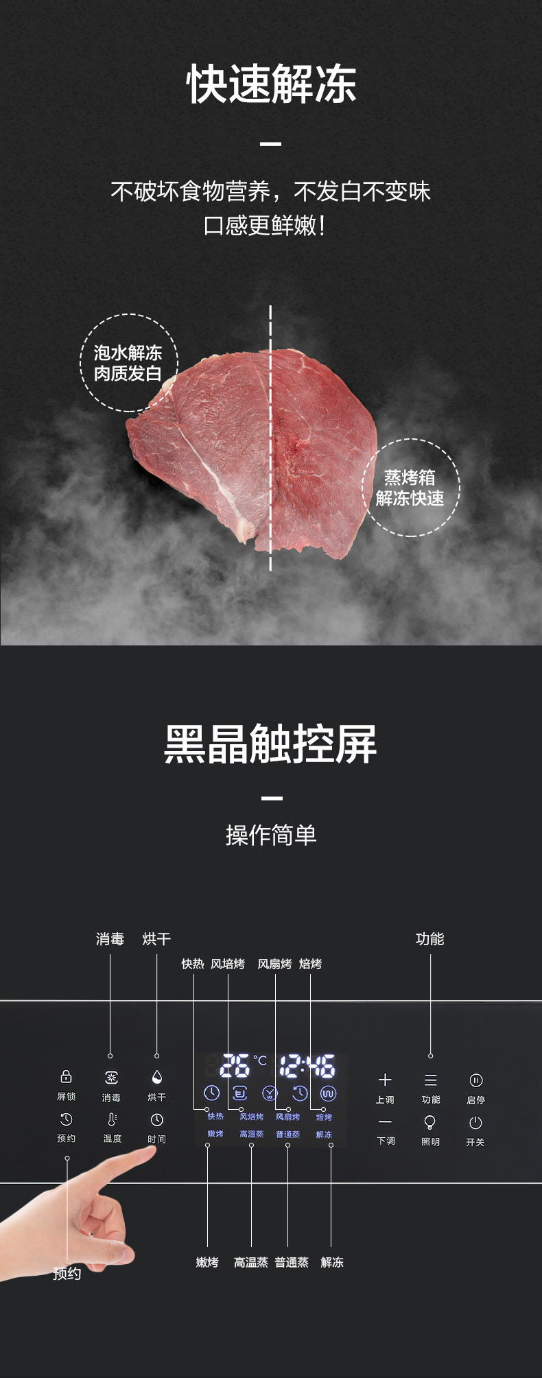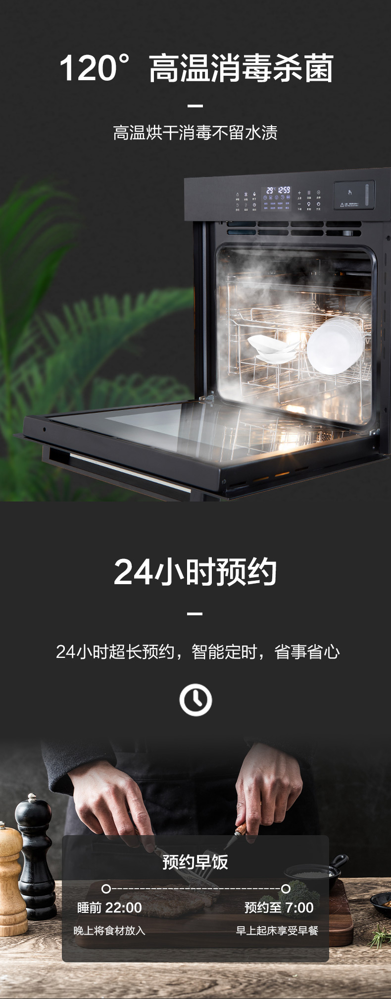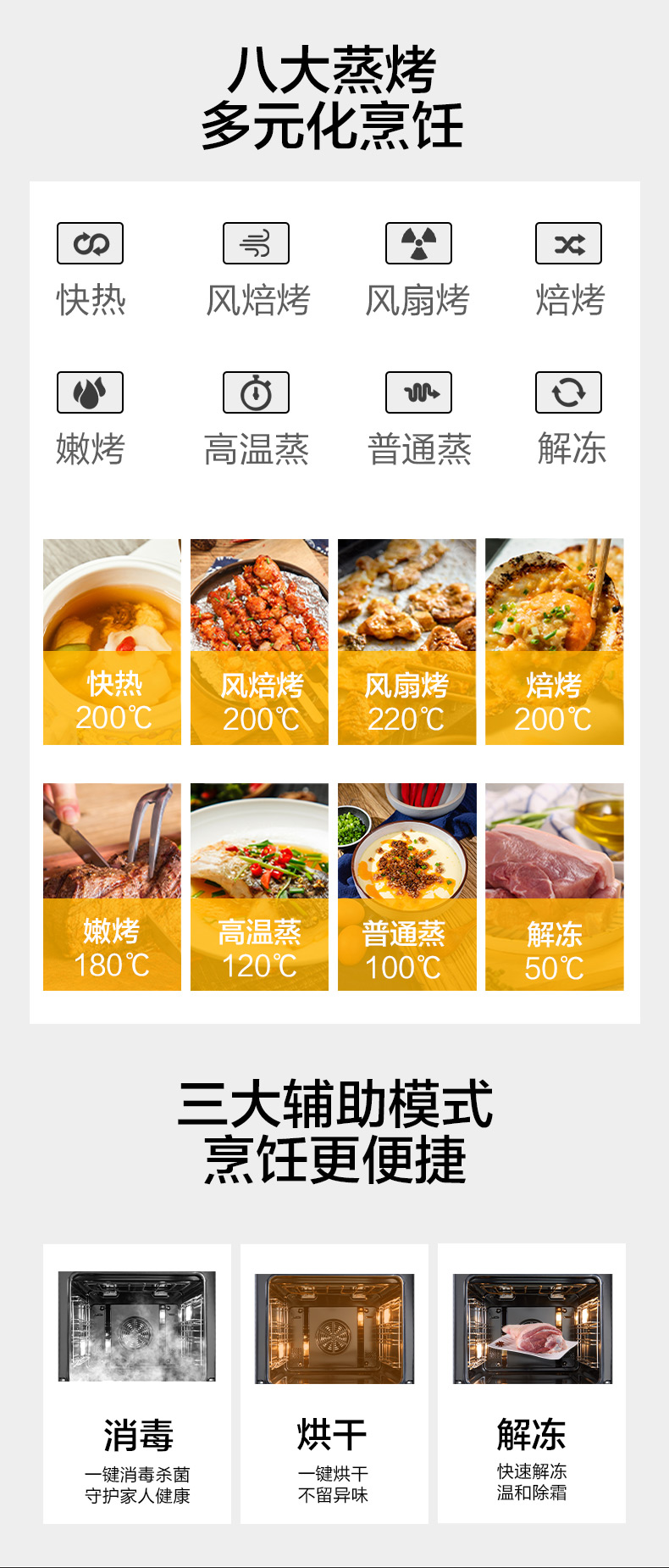 蒸烤消一體;360°均衡加熱,精準(zhǔn)控溫;80L大容量;