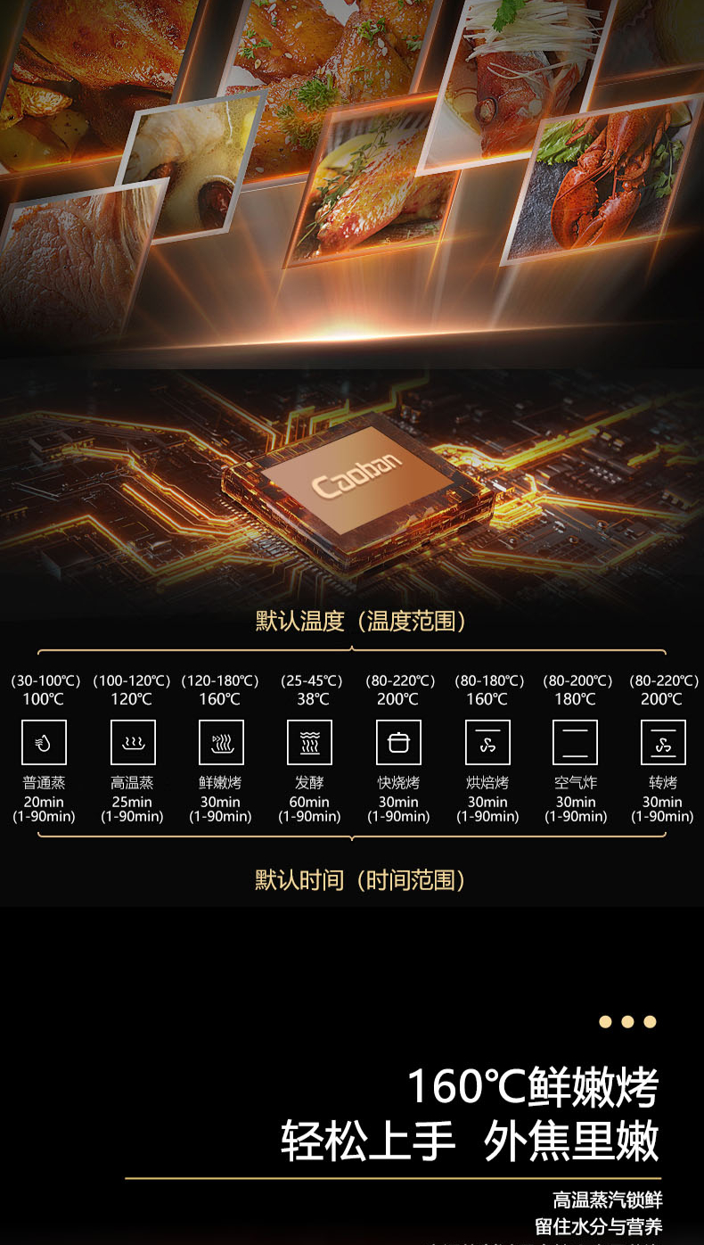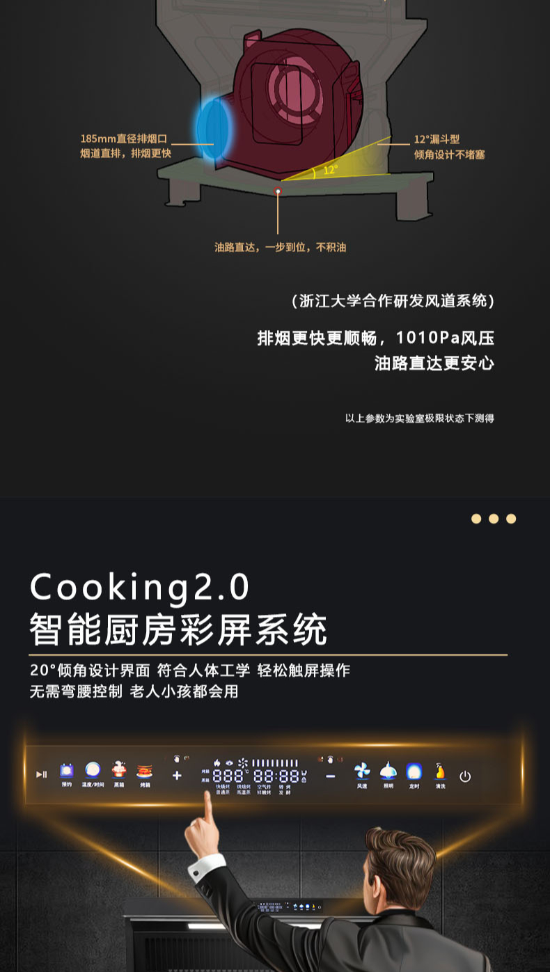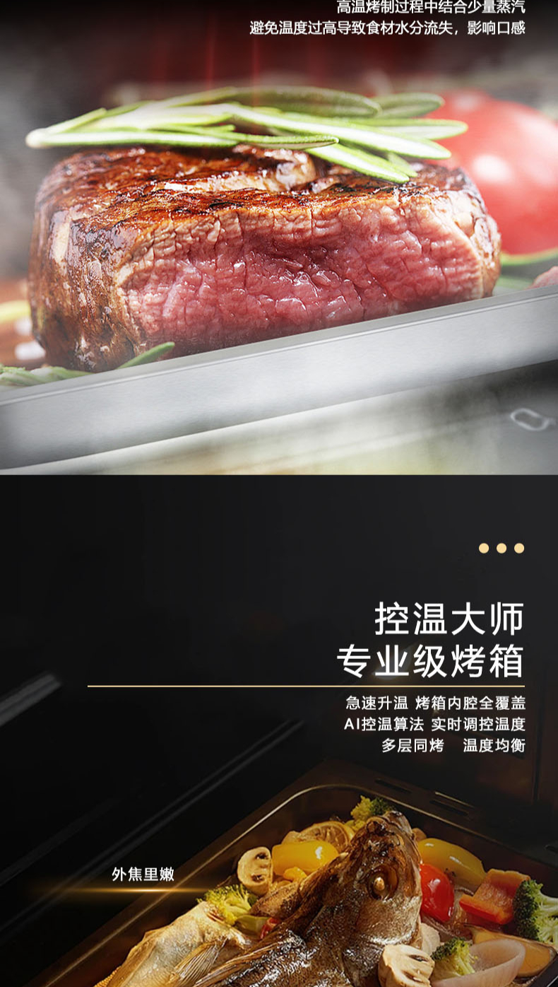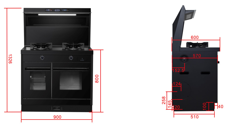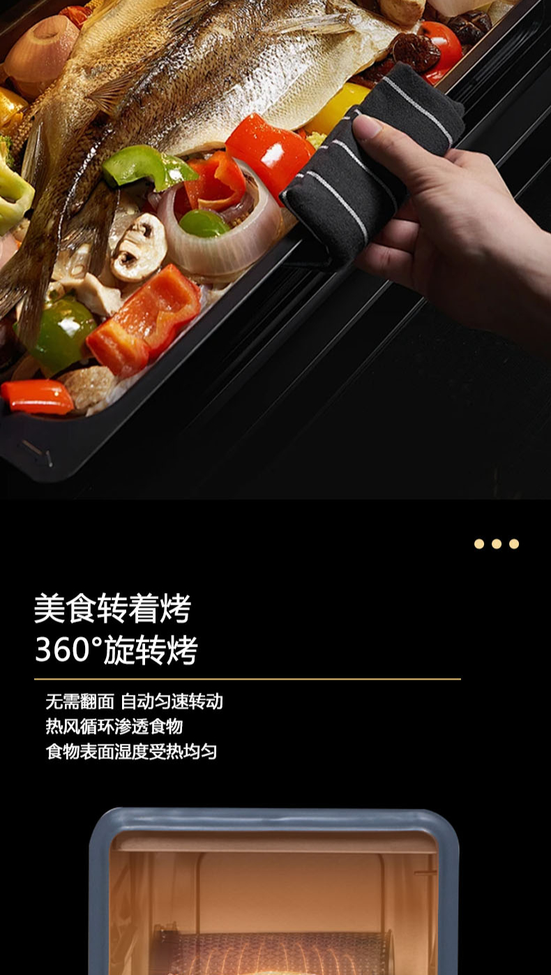 26m3每分巡航風量,左烤右蒸烤,旋風轉烤,智能彩屏,揮手感應,雙灶定時熄火